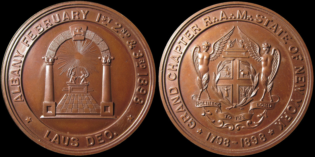 13d) 1898 Grand Chapter Royal Arch Masons Albany New York. Bronze, 44.7mm, 4.8mm thick