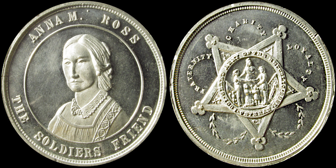 28f) Anna Marie Ross, The Soldier's Friend. Famous Civil War nurse from Philadelphia. 37.7mm, white metal