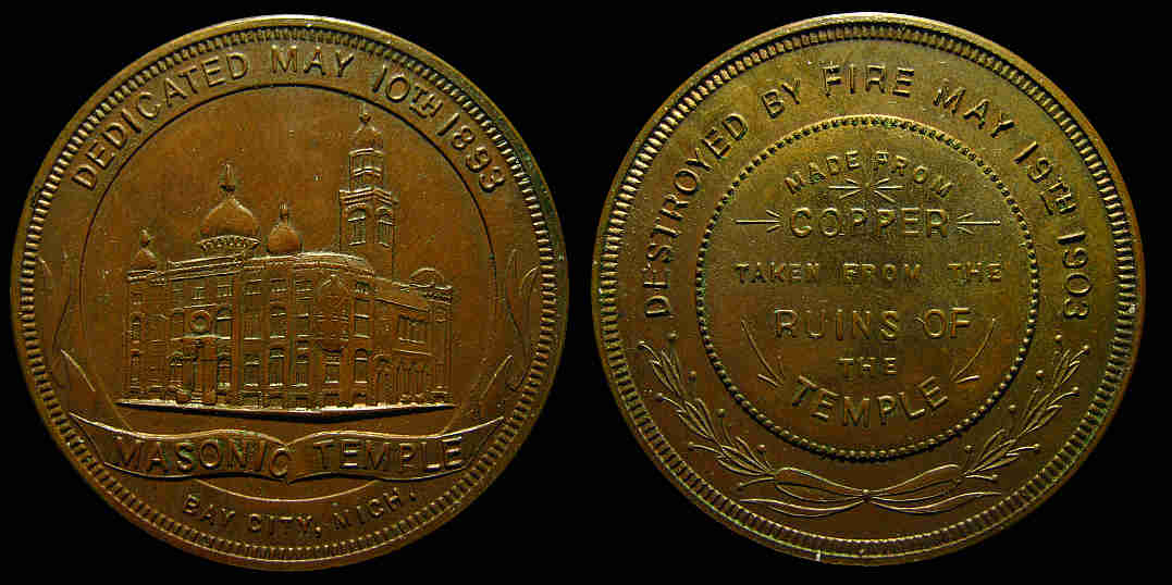 10) Masonic Temple / Bay City, Mich. / Dedicated May 10th 1898 / Destroyed By Fire May 19th 1903 / Made From Copper Taken From The Ruins Of The Temple; Bronze, 33.3mm