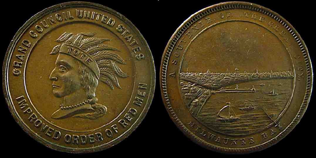 34) Grand Council United States / Improved Order Of Red Men / A Souvenir Of The Cream City. / Milwaukee Bay; Bronze, 38.5mm