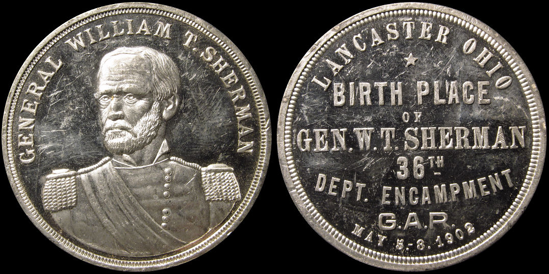 28b) General William T. Sherman / 1902 36th GAR Encampment Lancaster, Ohio / Birth Place; White Metal, 37.7mm