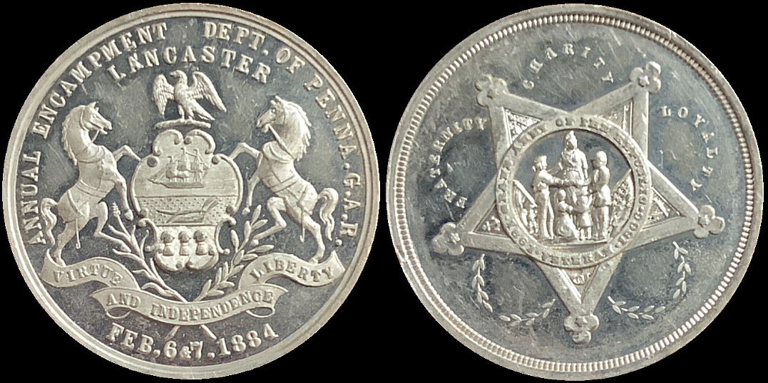 28d) Annual Encampment Department of Pennsylvania in Lancaster, February 1884. White metal, 37 mm. Image courtesy Josef Traktovenko.