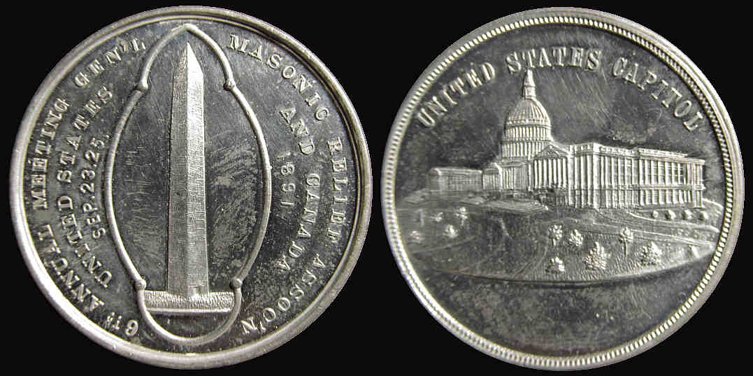 8) 6th Annual Meeting Gen’l Masonic Relief Assoc’n / United States And Canada / Sep. 23. 25. 1891 / United States Capitol; White Metal, 37.8mm