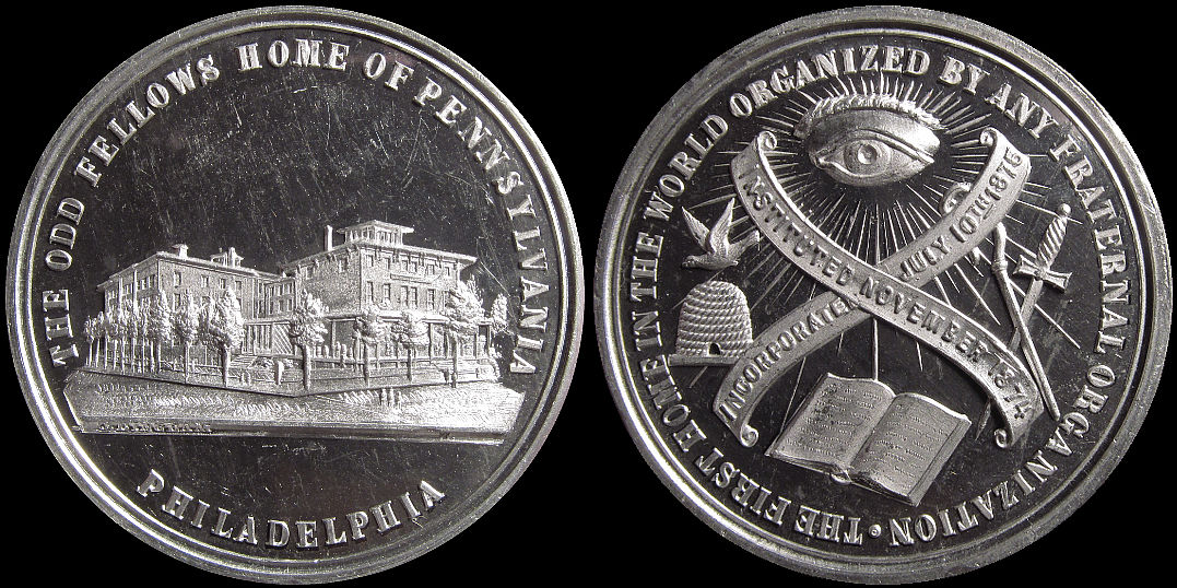 38) The Odd Fellows Home Of Pennsylvania / Philadelphia / The First Home In The World Organized By Any Fraternal Organization / Instituted November 1874 / Incorporated July 10th 1875; White Metal, 38.1mm