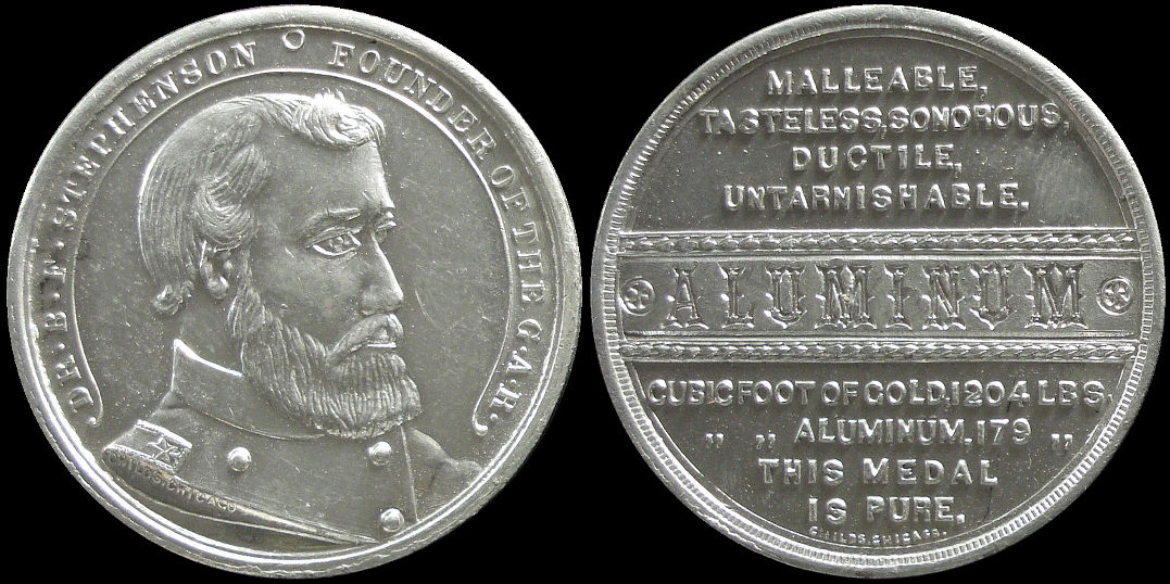 28c) "Dr. B. F. Stephenson Founder Of The G.A.R.", Aluminum, 37 mm. Image courtesy Jonathan Brecher.