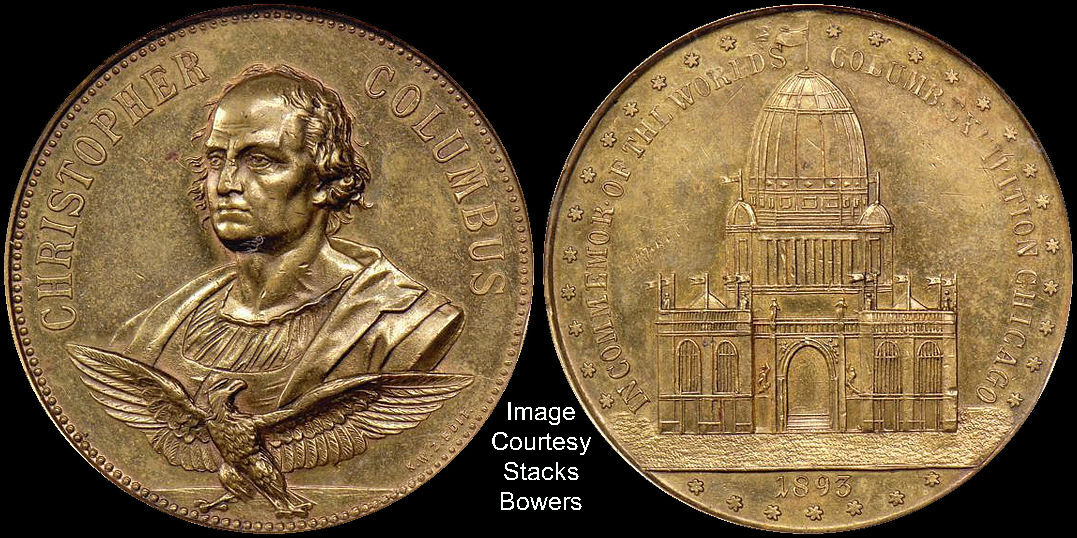 1893 Worlds Columbian Exposition Chicago So Called DollarsThis web page can be used to search for so called dollars commemorating the 400th anniversary of Columbus landing in America. Most pieces are from the World’s Columbian Exposition held in Chicago in 1893. It does not include those with commercial advertising. For those, CLICK HERE. It includes pieces from different sources including Hibler and Kappen's book of so called dollars, Nathan Eglit's "Columbiana", and recently "SH" numbers as listed in Jeff Shevlin and Bill Hyder's 2023 book "SoCalled Dollars Volume 1: United States Expositions". Use the "FIND"function of your browser to type in a word, inscription, or reference number. Searching for World Columbian medals is often problematic due to the same inscriptions being used over and over on different pieces. The many different die combinations can also be confusing. If possible, type a word or phrase into your browser’s FIND function that you think might be unique or at least common to only a small number of pieces. Skip from one entry to the next by hitting your RETURN button until you find the description that matches exactly. Inscriptions have to be typed in exactly with single spacing between words. Also be careful to include punctuation. Sometimes periods can look like commas and visa versa. Try typing both ways if there is any doubt. Dashes should usually also be included, but quotations maybe or maybe not. Underscores(low dashes), stars, and dots probably not. Many, but not all of my entries are linked to an identifying image. If original images were not available, I sometimes made composite images using obverse and reverse images from different pieces. To view images all at once, Click Here Updated January 2025 |