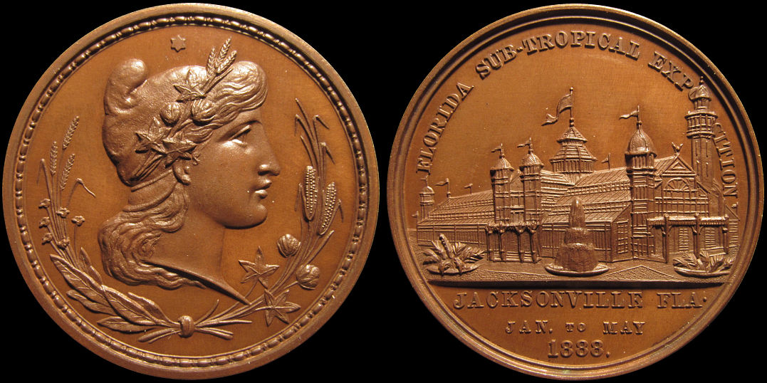 105) "Minneapolis Exposition Aug. 31-Oct. 15, 1887". I found this one on ebay and it is the only one I have seen. I found none in old auction/sales catalogs. Extremely Rare, white metal, 35.1mm |
