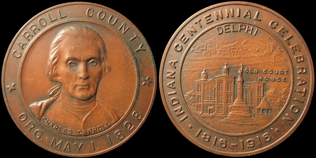 188a) Carroll County Centennial medal from 1916. A strong Very Rare, possibly Extremely Rare. Bronze, 38mm |