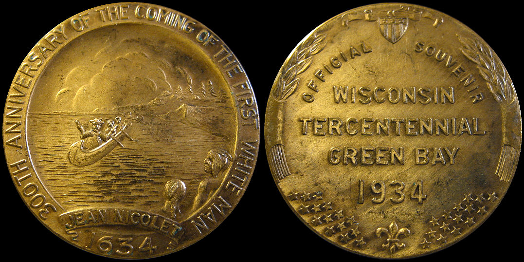 197) Commemorating the 300th anniversary of the arrival of Jean Nicolet in 1634. There were 35 of these with original cardboard inserts sold in a single Kurt Krueger sale in 1992. Very Scarce. Bronze, 37.3mm |