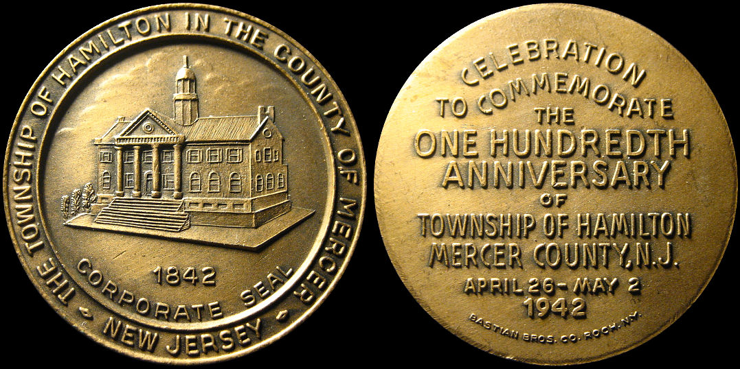 209) "The One Hundredth Anniversary Of Township Of Hamilton". Rare. Bronze, 37.8mm. |