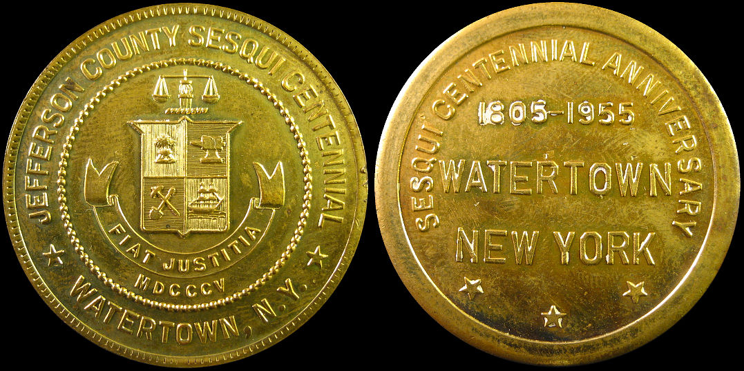214) "Jefferson County Sesqui Centennial / Watertown, N.Y.", I have not run across very many of these. Rare. Bronze, 38.2mm.   |