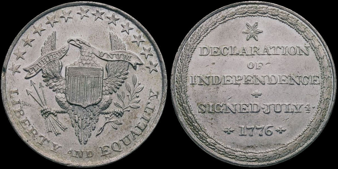 270b) Commemorating the 100 year anniversary of the surrender at Yorktown. Found in copper/bronze or white metal. Appears to be Rare to Very Rare in either metal, but usually holed in white metal. Have not seen in silver, and Baker does not list it as such. Baker 451. Bronze, 33mm. Image Courtesy of Stack’s Bowers Galleries www.stacksbowers.com |