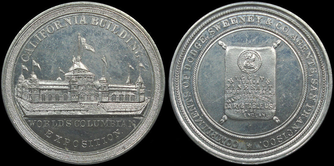 This is the only so called dollar size piece that I know of showing the California Building at the 1893 Chicago Worlds Fair. Image courtesy Jonathan Brecher |