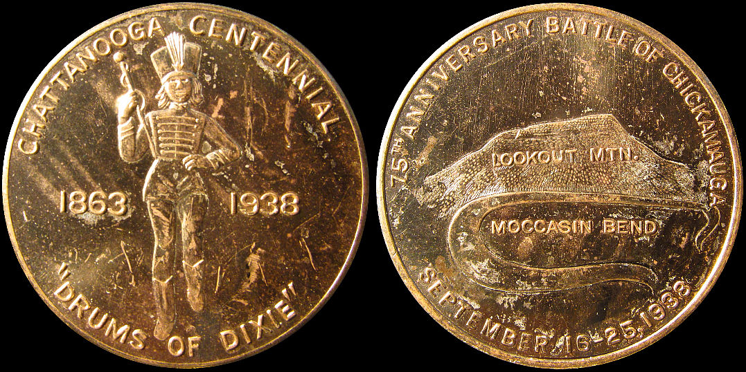 288) Commemorating the 75th Anniversary of the Battle of Chickamauga, 1938. Rare. Brass, 32.7mm(essentially 33mm rounded up) |
