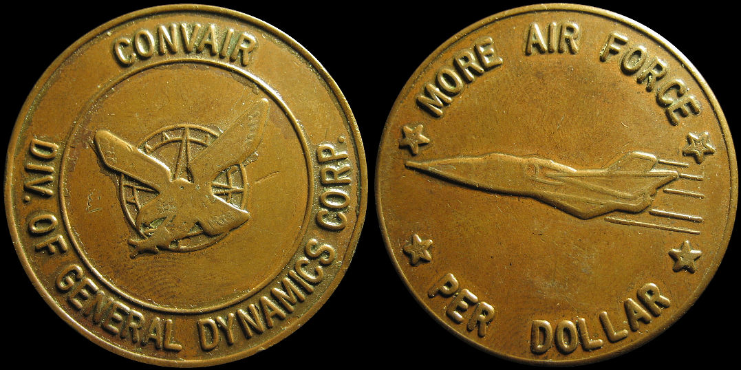 291) Obverse the same as the reverse of HK747. "More Air Force Per Dollar", Found in aluminum and copper. Combining both together, Very Rare, and much rarer than HK749. Copper, 38.3mm. Look at SO CALLED DOLLARS on ebay |