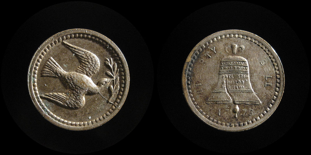 268a) Unlisted in Rulau/Fuld, but with a similar obverse design to Douglas 44. In the November 2019 Stacks Baker auction there were four of these that sold, all in white metal. Two were holed and two were un-holed. But looking through old catalogs, I only found two of these, both also in white metal and both holed. The two un-holed examples from the Stacks auction are the only ones I have seen un-holed. With so many of these showing up at one auction, one might conclude that these pieces are not very rare, however I found only two, and it is also unlisted in Rulau/Fuld/Baker. So, for me, Rare to Very Rare holed and Very Rare to Extremely Rare un-holed. White metal, 32.9mm. Image courtesy of Stacks from November 2019 lot#20731 at Stack’s Bowers Galleries www.stacksbowers.com |