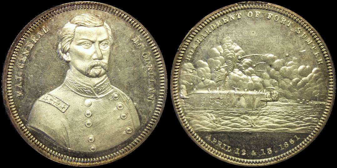 271) "Pennsylvania Volunteers", "Gettysburg July 3, 1863", "In Commemoration Of The Return Of The State Flags....", I have found this piece described as white metal, brass, and bronze. Very Rare in each metal. Brass, 38.8mm. Look through BATTLE of GETTYSBURG items on ebay |