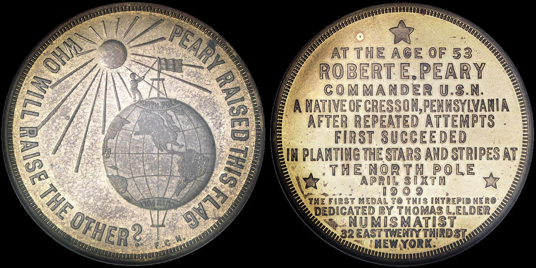 314) A Thomas Elder medal that should have been included in HK. According to Thomas DeLorey, found in silver, German silver, aluminum, copper, and brass. The piece shown here is from Heritage Auctions February 2008 and was described as bronze. Rare bordering on Very Rare in Aluminum. Extremely Rare in the other metals. DeLorey #15, 38.1mm. Image Courtesy of Heritage Auctions www.ha.com Find THOMAS ELDER MEDALS and TOKENS on ebay |