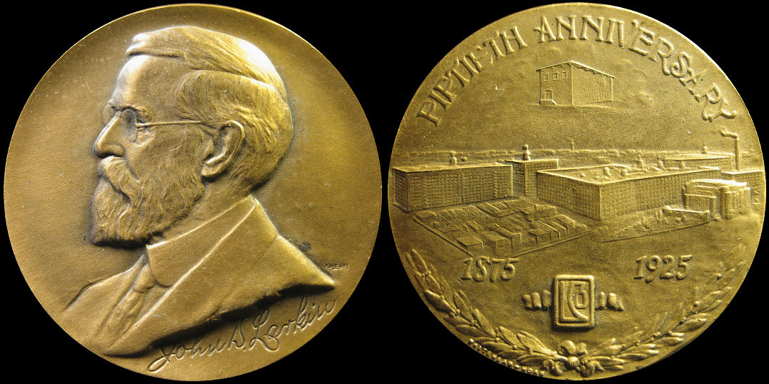 349) Medal from the 50th anniversary of the John Larkin Company that was headquartered in Buffalo, New York. Scarce. Fairly common. Bronze, 38.3mm. |