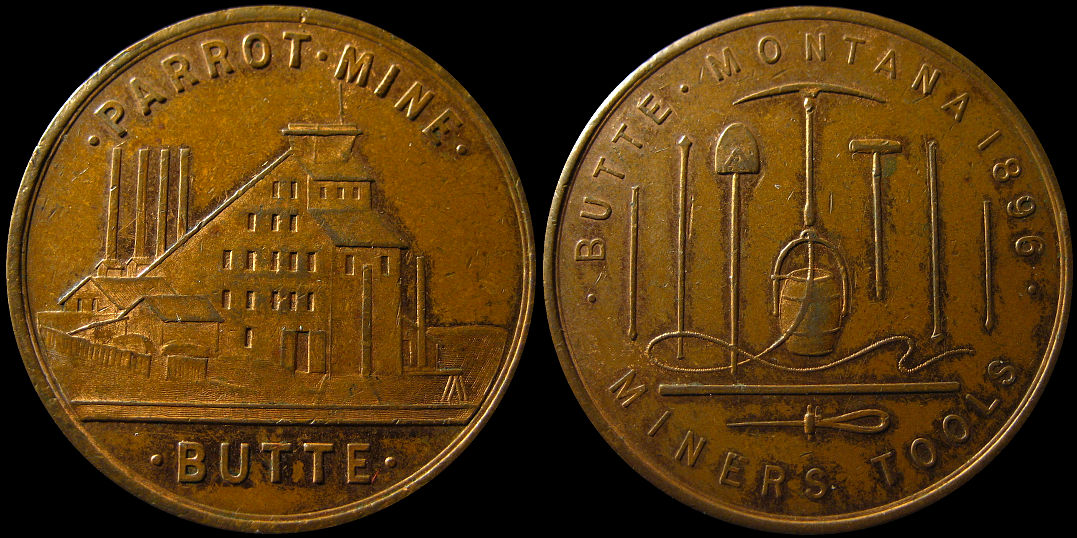 341) This piece is like HK734, but showing the "Parrot Mine" instead of the "Anaconda Mine". Unlisted in the first edition of HK, HK734b in the second edition. Rare, and rarer than HK734. Rulau But 26. Copper, 37.9mm.  Look at MINING TOKENS/MEDALS on ebay - MINUS COAL |