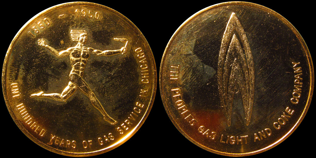 355) "Peoples Gas Light and Coke Company" Chicago. Very Rare. Gilt copper, 38.2mm. |