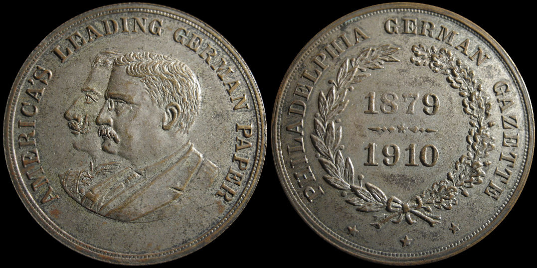 347b) Evidently from the 31st anniversary of the "Philadelphia German Gazette". Rare. Silver plated bronze, 38.8mm.  Shop for SO CALLED DOLLARS on ebay |