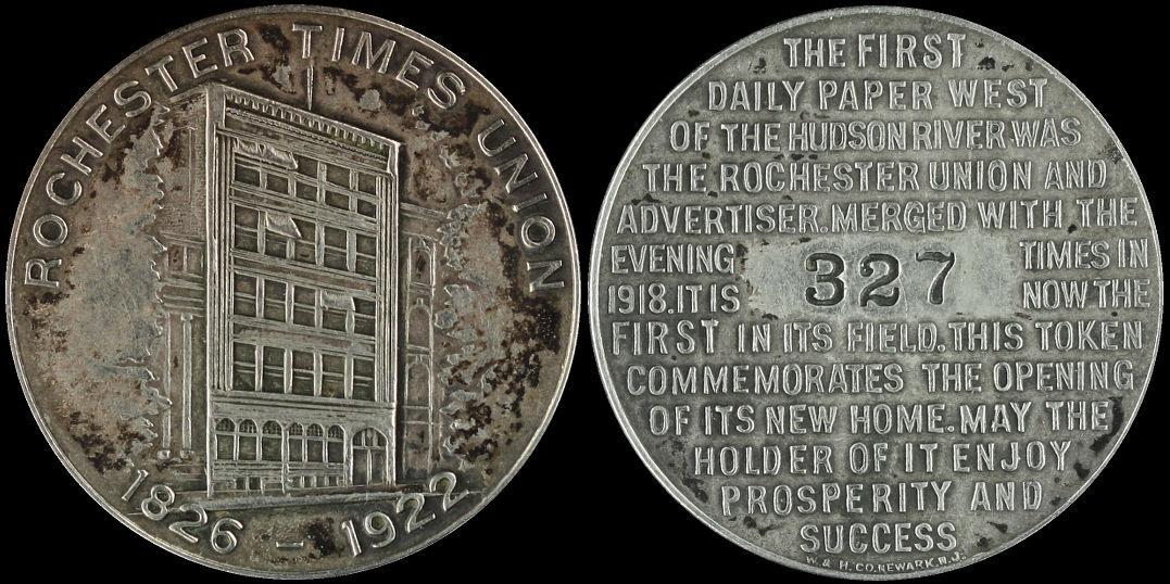 347f) New bank building dedication of the Second National Bank, Warren, Ohio, March 1914. Very rare, Copper, 35mm. Image courtesy Randy Dobler |